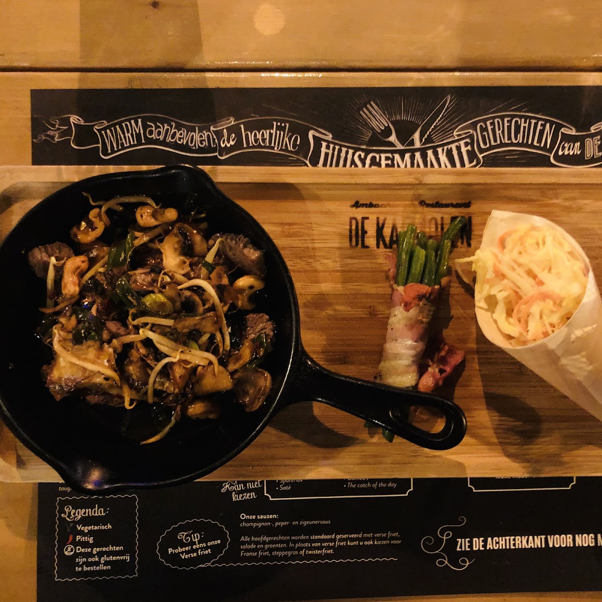 The menu at De Kafmolen offers a delightful selection of Dutch comfort food, perfect for those craving hearty and satisfying dishes. A standout is the Friet Te Krokant, a crispy take on the classic fries, golden and perfectly fried to deliver a crunch in every bite. Pairing wonderfully with this dish is the Fikandel, a popular Dutch snack that adds a savory, meaty touch to the meal. For those looking for a more traditional choice, the Verse Friet offers freshly made fries, a simple yet delicious option that highlights the restaurant's commitment to quality ingredients. Each dish reflects De Kafmolen's dedication to serving up classic flavors with a twist, making it a go-to spot for anyone in the Schijndel area craving a taste of Dutch street food. Whether you're indulging in the crispy Friet Te Krokant or enjoying the classic Verse Friet, there's something for every palate on this menu.
